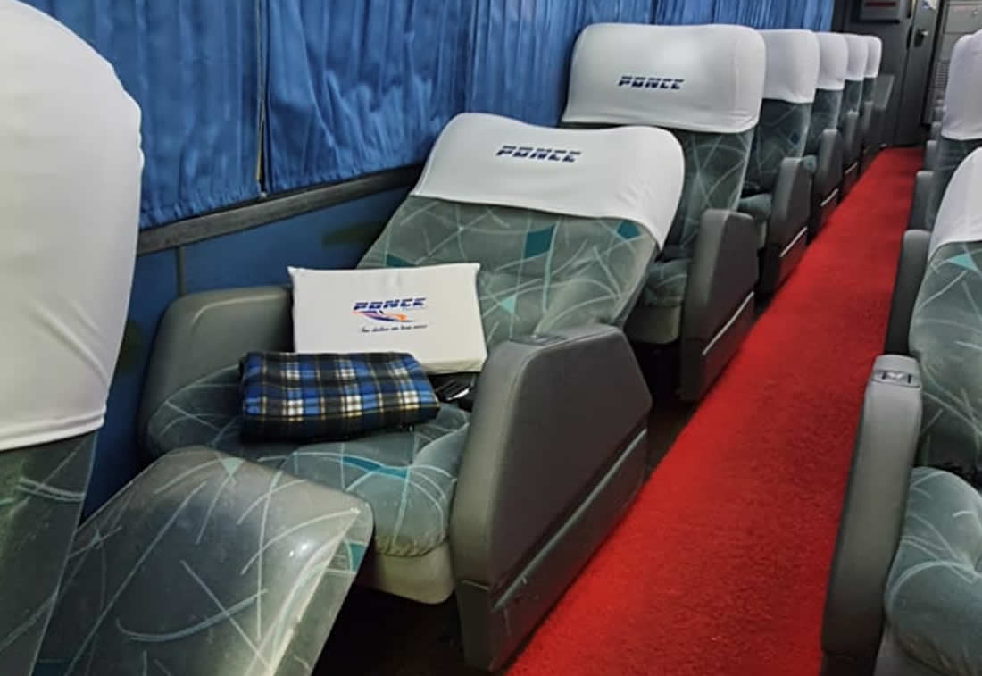 -27 POLTRONAS SOFT LEITO TOTAL, -1 BANHEIRO, -1 FRIGOBAR, - TVS DVD, -SOM, -MICROFONE, -TOMADAS PARA CARREGAR CELULAR, -WI-FI ( CONSULTE DISPONIBILIDADE ).