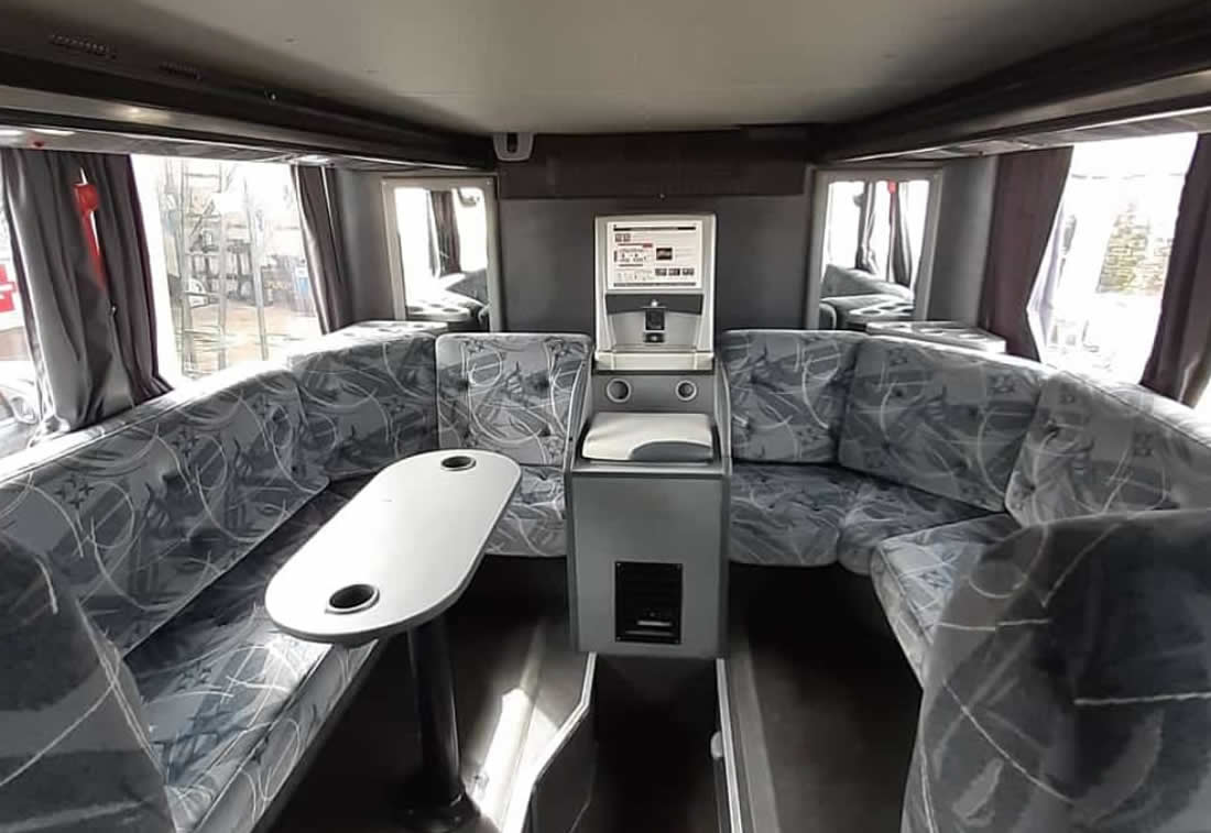 -44 POLTRONAS SEMI LEITO PISO SUPERIOR, -08 POLTRONAS SEMI LEITO PISO INFERIOR, -1 BANHEIROS, -2 FRIGOBAR, -TVS DVD, -SOM, -MICROFONE, -TOMADAS PARA CARREGAR CELULAR, -WI-FI ( CONSULTE DISPONIBILIDADE ).