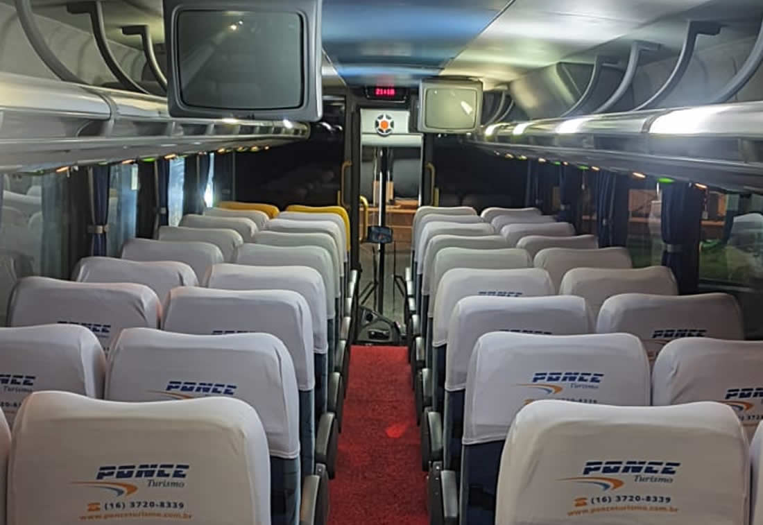 -46 POLTRONAS SOFT SEMI LEITO, -1 BANHEIRO, -1 FRIGOBAR, - TVS DVD, -SOM, -MICROFONE, -TOMADAS PARA CARREGAR CELULAR, -WI-FI ( CONSULTE DISPONIBILIDADE ).